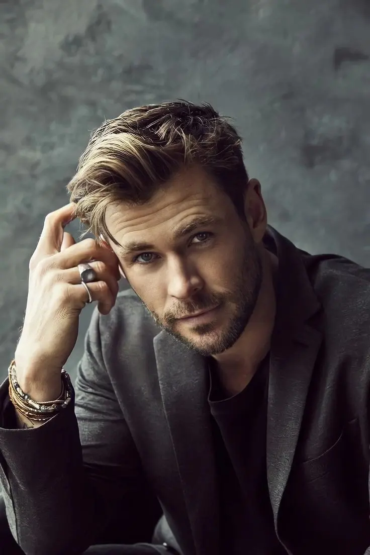 Chris Hemsworth has also nailed the formal Chris Hemsworth hairstyle. On the red carpet or during interviews, he often sports a neat side part that exudes confidence and elegance. The clean side part gives his hair structure without looking too rigid.