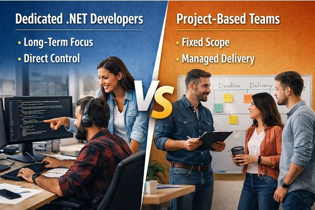 When you plan a software project built on .NET, one big question shows up early. Should you work with dedicated developers who focus only on your project, or should you go with a project-based team that handles everything from start to finish?