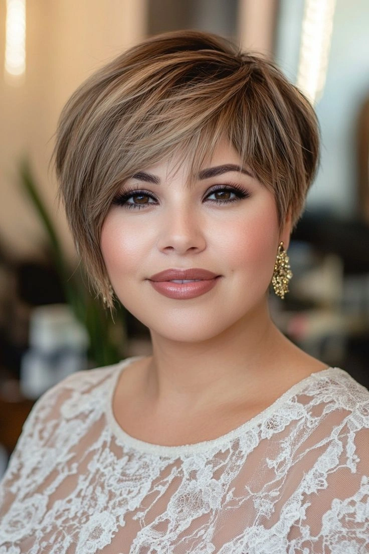 This is the iconic Karen haircut. It’s a short, blunt bob with sharply cut edges and often paired with heavy, straight-across bangs. The sharp angles and voluminous style make it stand out.
