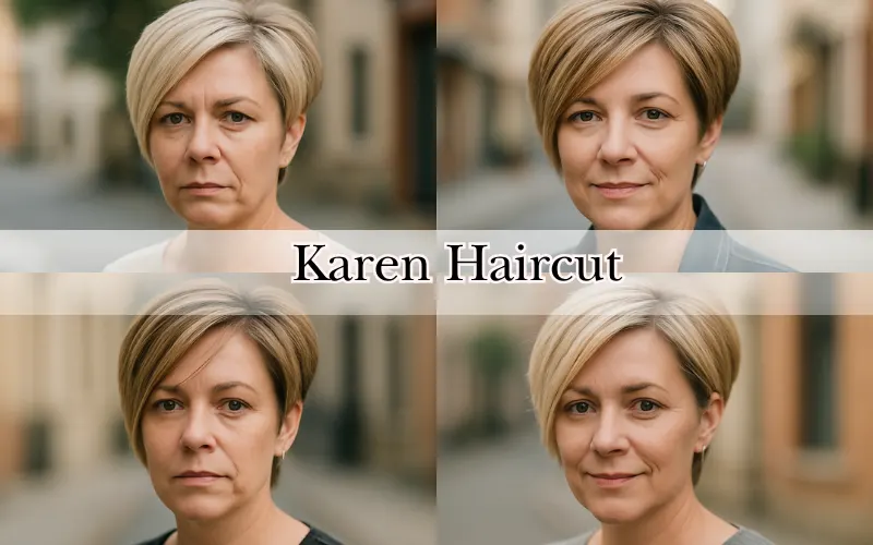 Want more? The curly Karen haircut tames ringlets into a frizzy bob, while the long Karen haircut stretches the drama to lobs with face-framers. What is the Karen haircut called in salons? Often “inverted bob” or “A-line,” but add “chunky highlights,” and it’s meme bait. Hairstylist tip: “Layer softly for a haircut Karen haircut vibe without the shade,” says Plociennik.