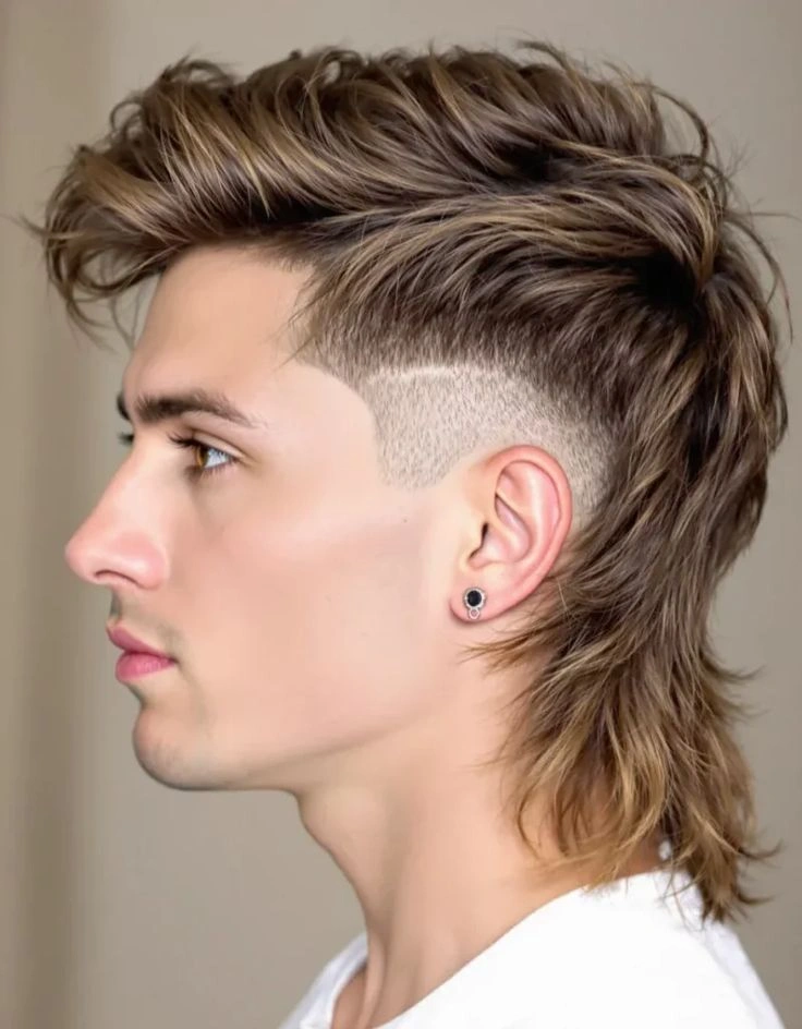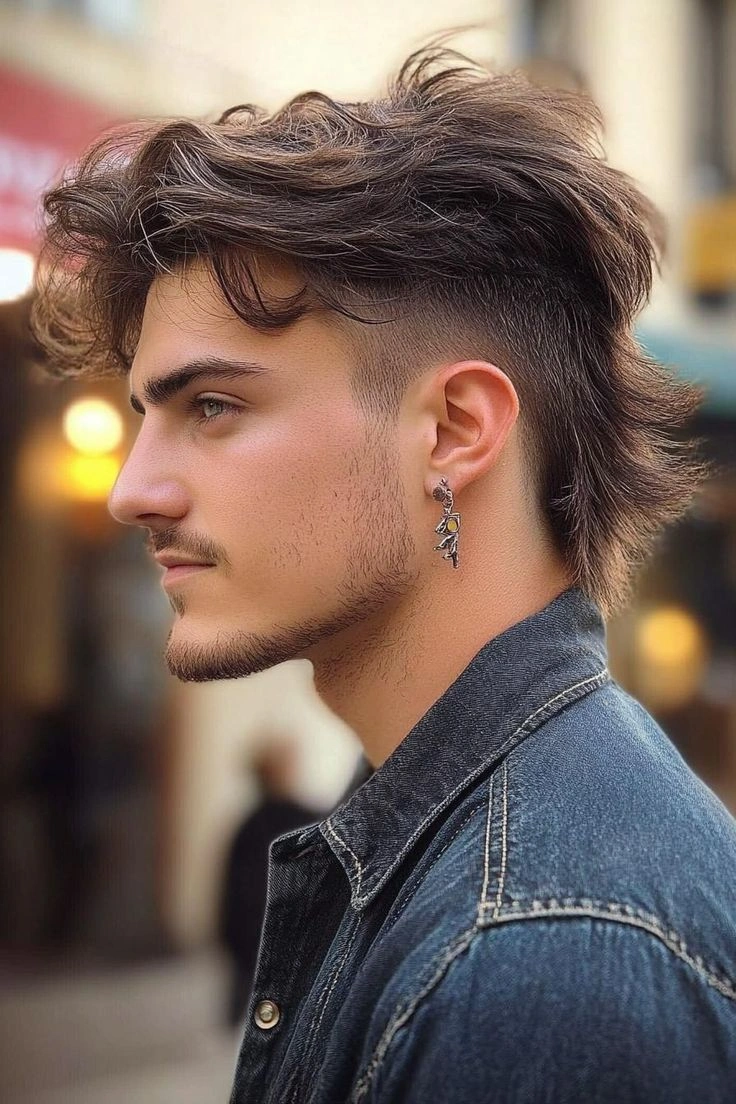 Men who want to channel their inner punk or express a fearless attitude will find this cut perfect. The Mohawk Mullet pairs exceptionally well with statement beards, such as thick, full beards or sharply defined goatees, to balance the dramatic haircut. Accessories like earrings or bold fashion choices can also elevate the look. If you’re ready to stand out in any crowd, the Mohawk Mullet is your go-to style.