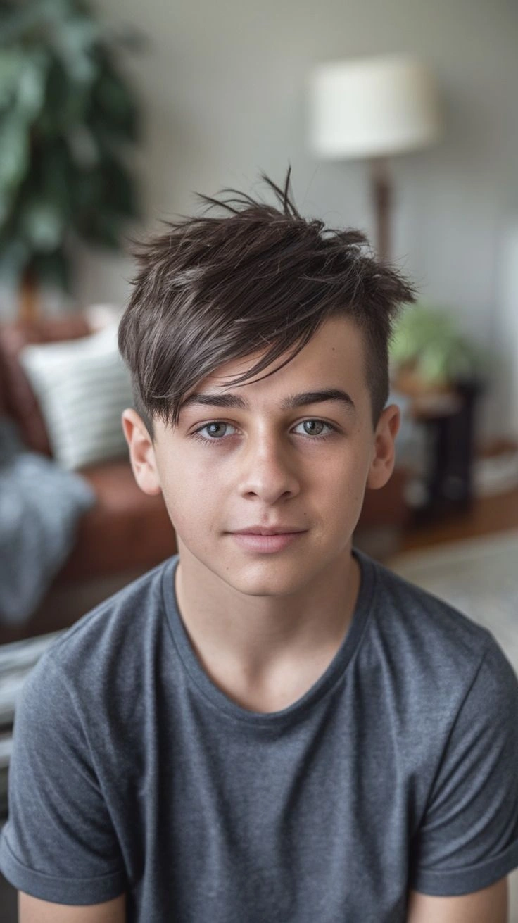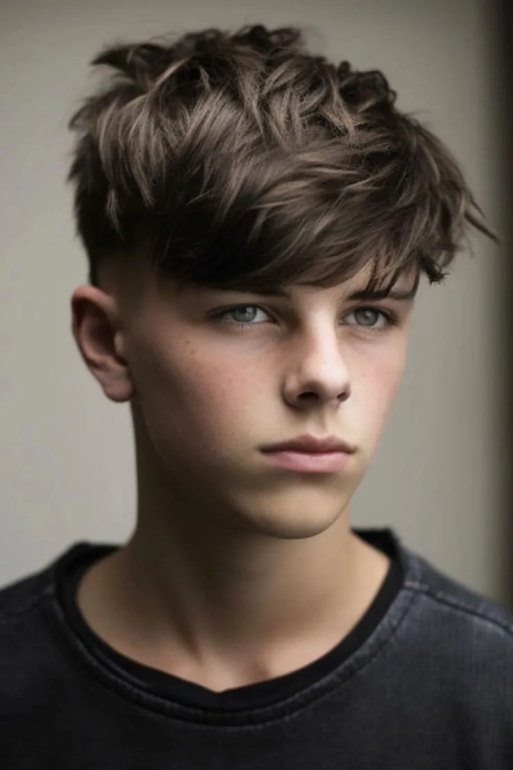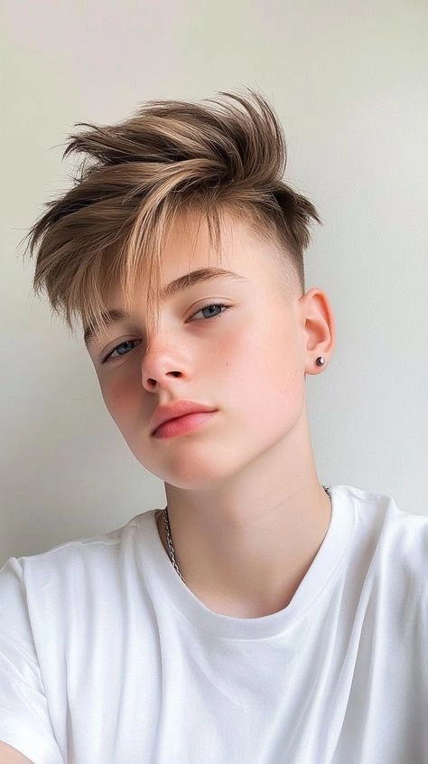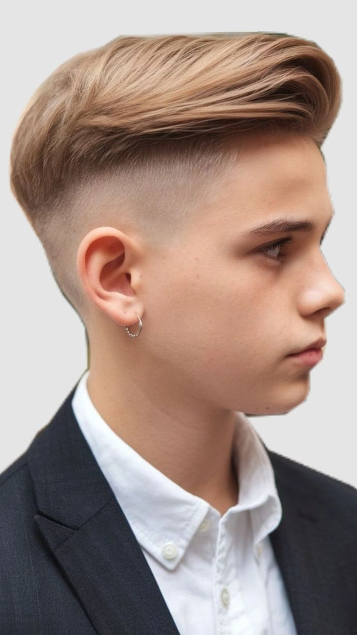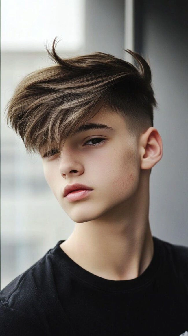 This isn’t just one hairstyle—it’s a whole category. The beauty lies in the contrast: teen boy haircuts long on top (3-5 inches) paired with buzz-cut or faded sides. You can slick it back, sweep it to the side, or leave it messy.