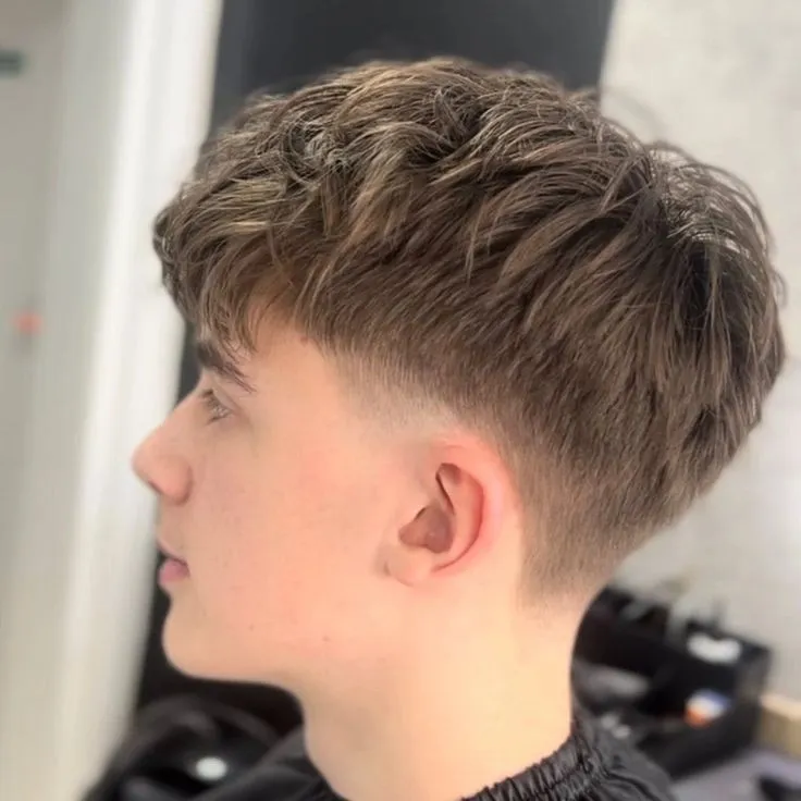 If the textured crop is the king, the mid fade is definitely the crown prince. This teen boy haircuts 2025 favorite features hair that gradually fades from longer on top to skin-tight on the sides, with the transition happening around the temple area.
